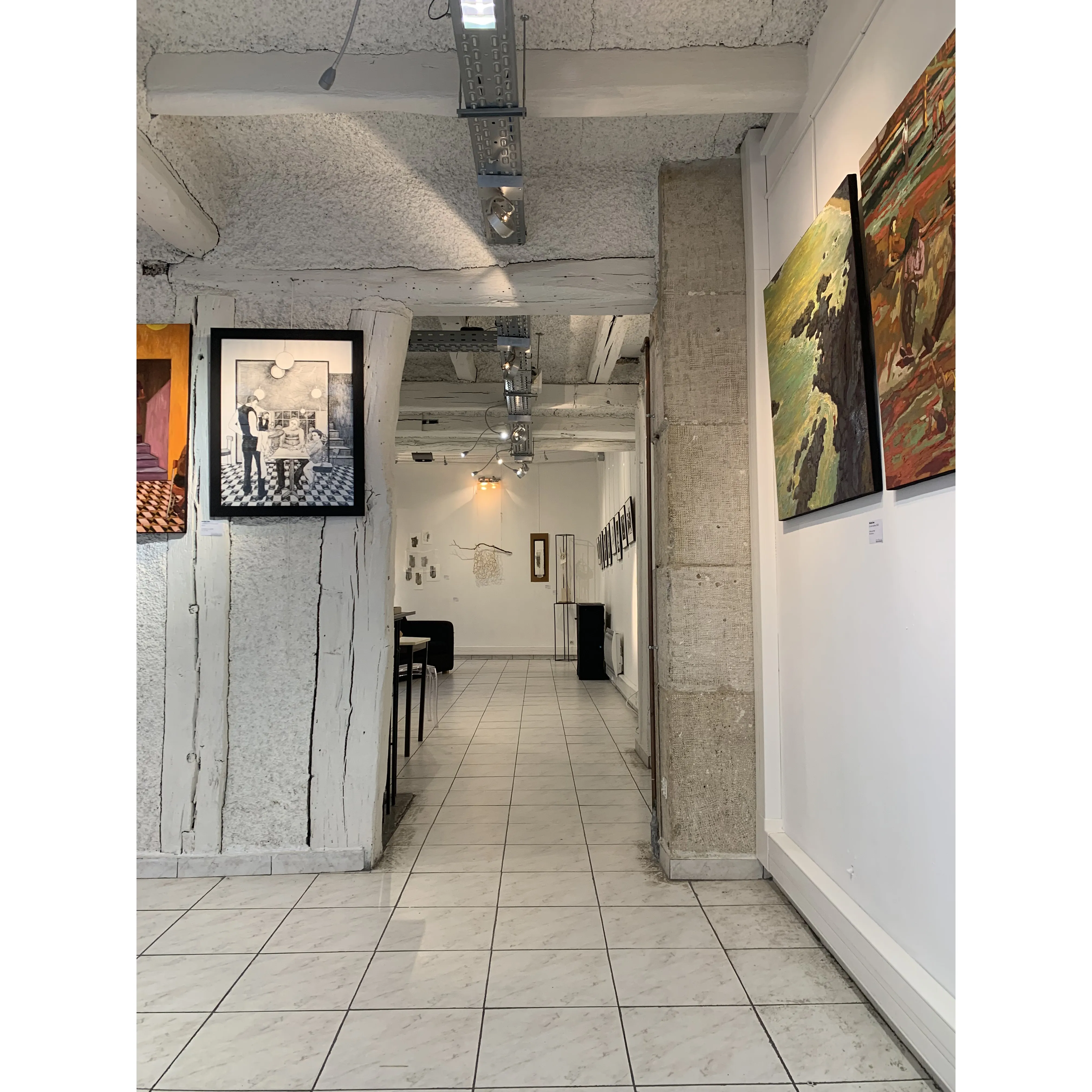Pour finaliser l’accrochage et assurer la mise en place, nous avons pu compter sur la présence d’amis venus de Reims, membres ou proches de l’équipe de la galerie 3W, avec laquelle nous collaborons régulièrement.
